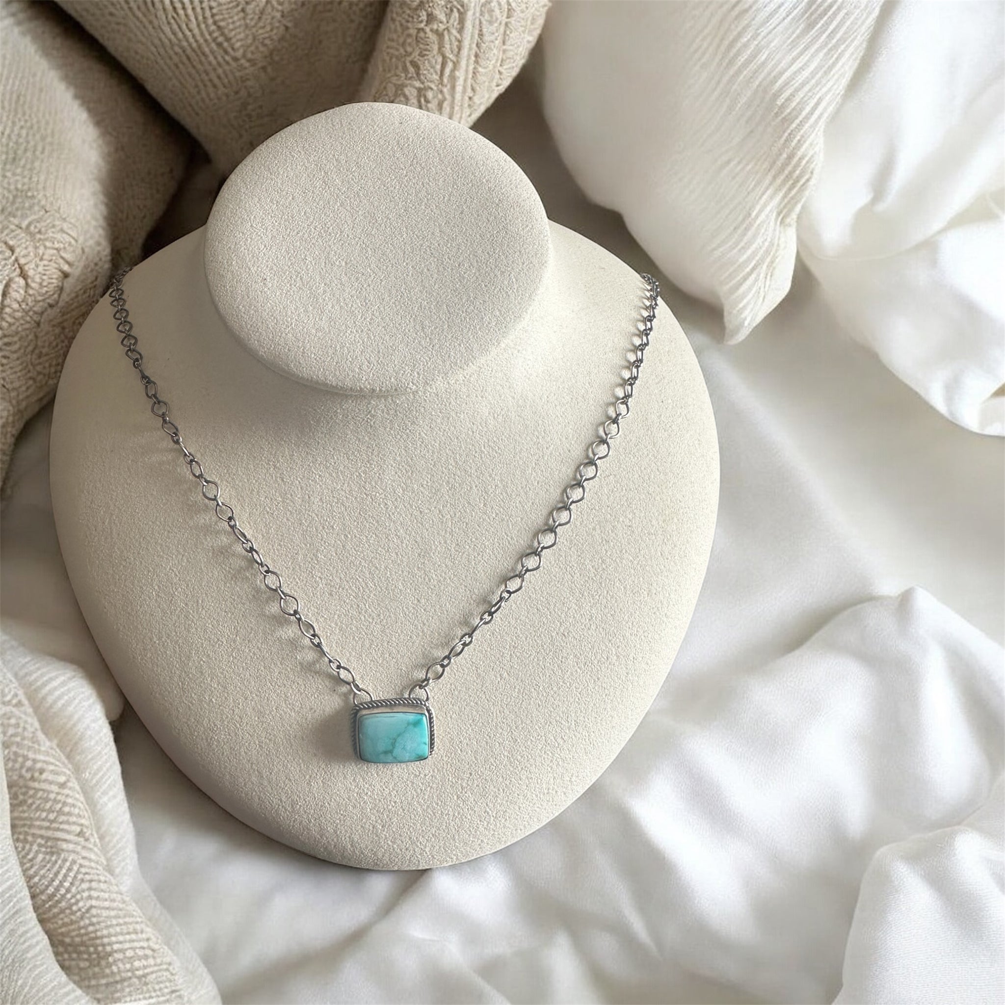 Elevate your collection with this stunning White Water Turquoise necklace, handcrafted with genuine sterling silver and rich, vibrant turquoise known for its calming blue tones and natural matrix.